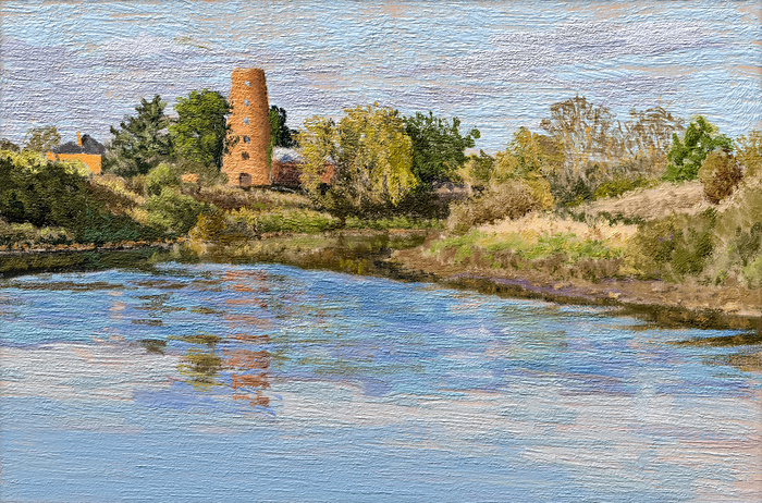 Carlton Mill beside the River Trent, an oil painting, started on-site and finished at home last September. This is followed by a digital version completed on the PC using an oil textured brush in Rebelle 7.
